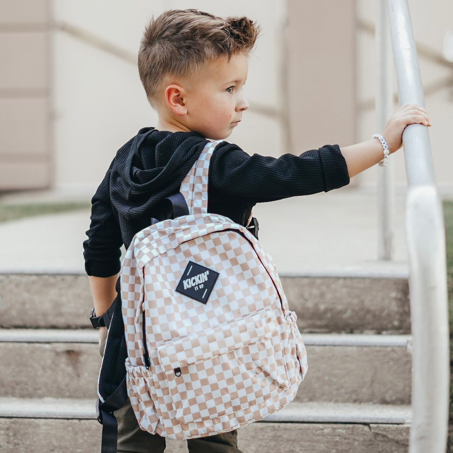 Mid-Size Black Checkered Backpack